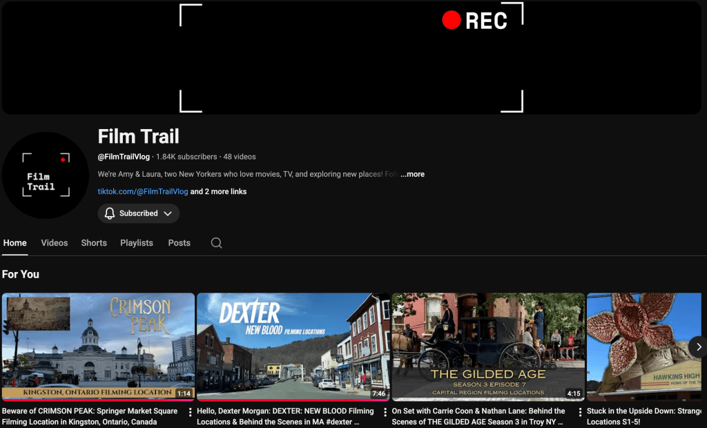 More recently, in my spare time, I co-created the YouTube channel Film Trail to share my love of filming locations for movies and TV shows. For this channel, I co-write and co-host the episodes, capture video on iPhone and DJI Osmo Pocket 3 cameras, edit all videos in Adobe Premiere, and post on YouTube and social media.